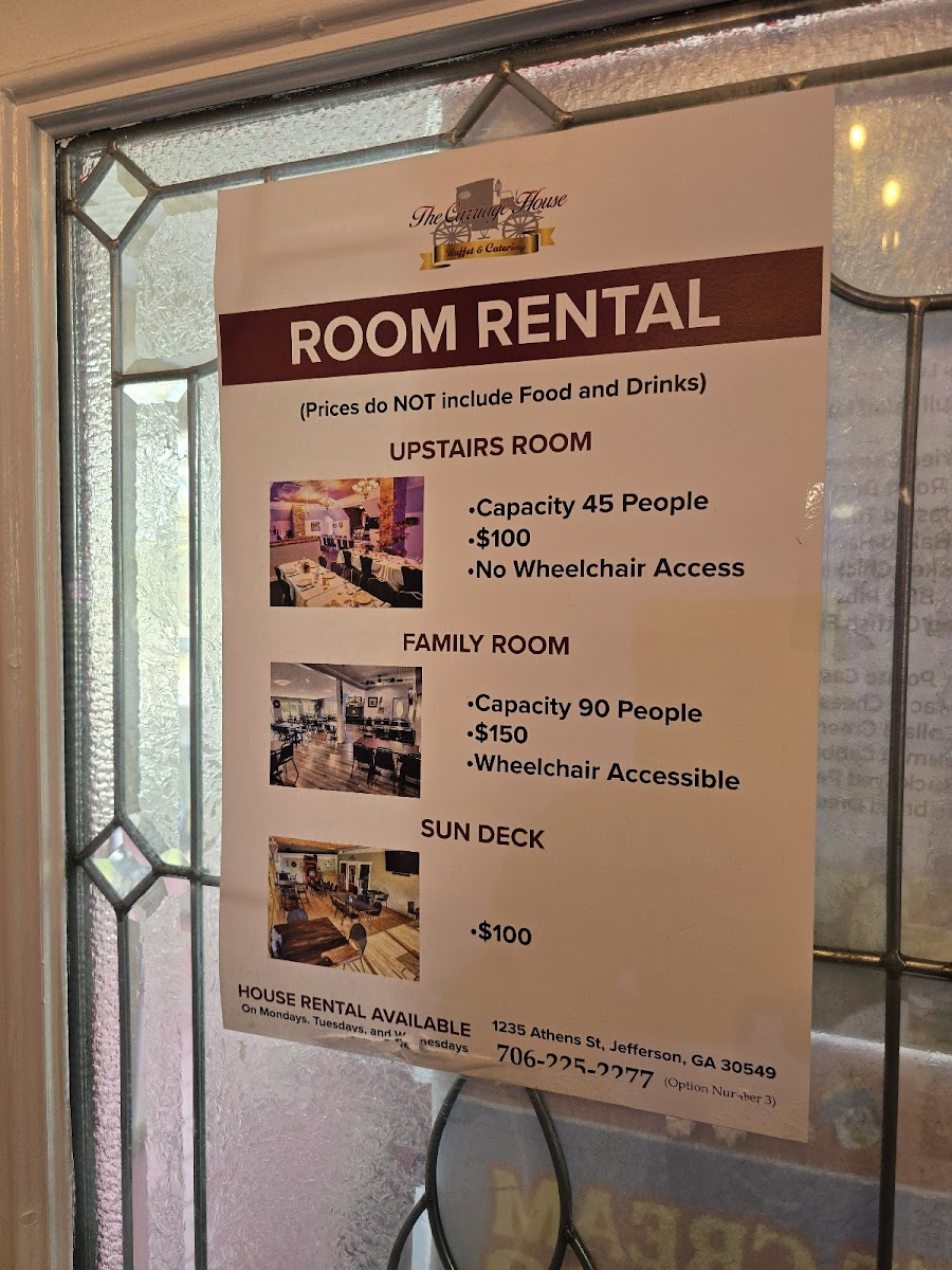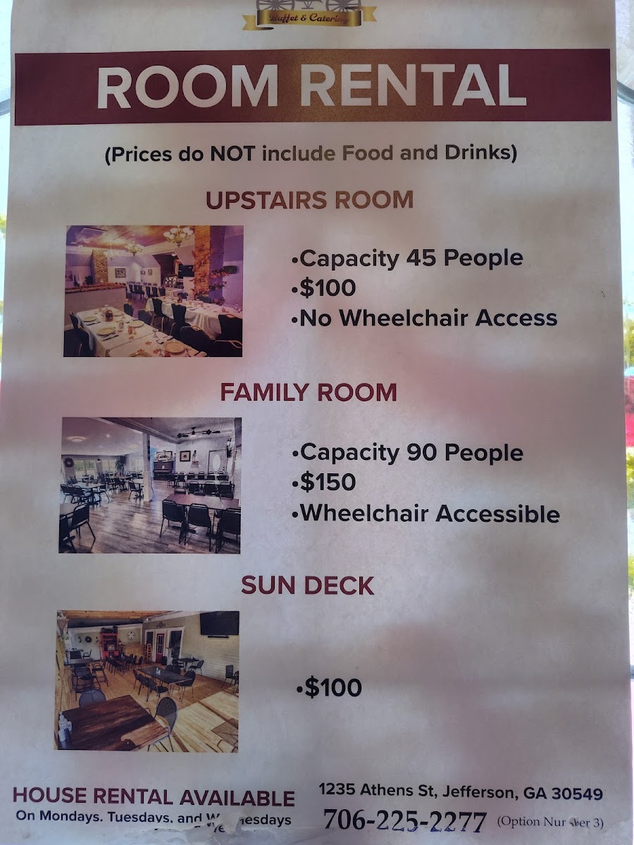 At The Carriage House Buffet & Catering Of Jefferson Menu, diners can expect a delightful array of delicious dishes perfect for any occasion. Located in the heart of Jefferson, GA, this charming spot offers a variety of buffet-style options that cater to all tastes. Whether you're in the mood for hearty Southern comfort food or fresh, seasonal dishes, the menu is designed to satisfy. Start with classic salads, hot entrees like tender meats and savory sides, and finish off with decadent desserts that will leave you coming back for more. Whether you're hosting an event or enjoying a meal with friends, the selection at The Carriage House ensures a satisfying experience with every bite.